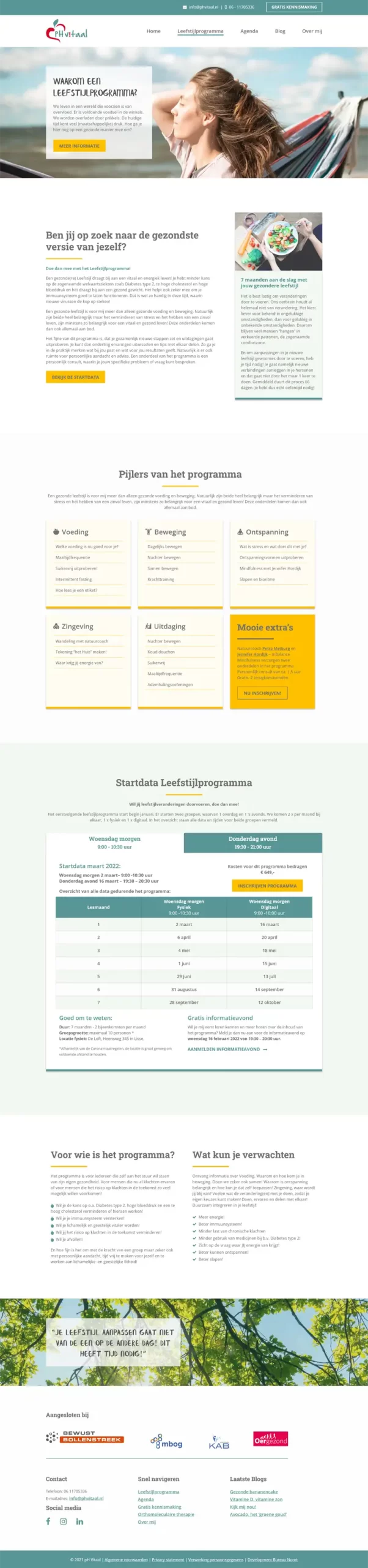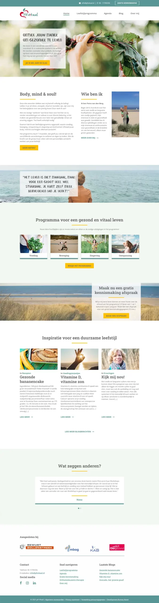 Voor ph Vitaal hebben wij een frisse en energieke website ontworpen waar bezoekers makkelijk inzicht krijgen in het leefstijlprogramma, orthomoleculaire therapie en workshops. De site maakt gebruik van onze custom eventagenda, zodat bezoekers makkelijk workshops kunnen bekijken en gelijk kunnen boeken. Het ontwerp ondersteunt het programma en nodigt uit om actief aan je leefstijl te werken.